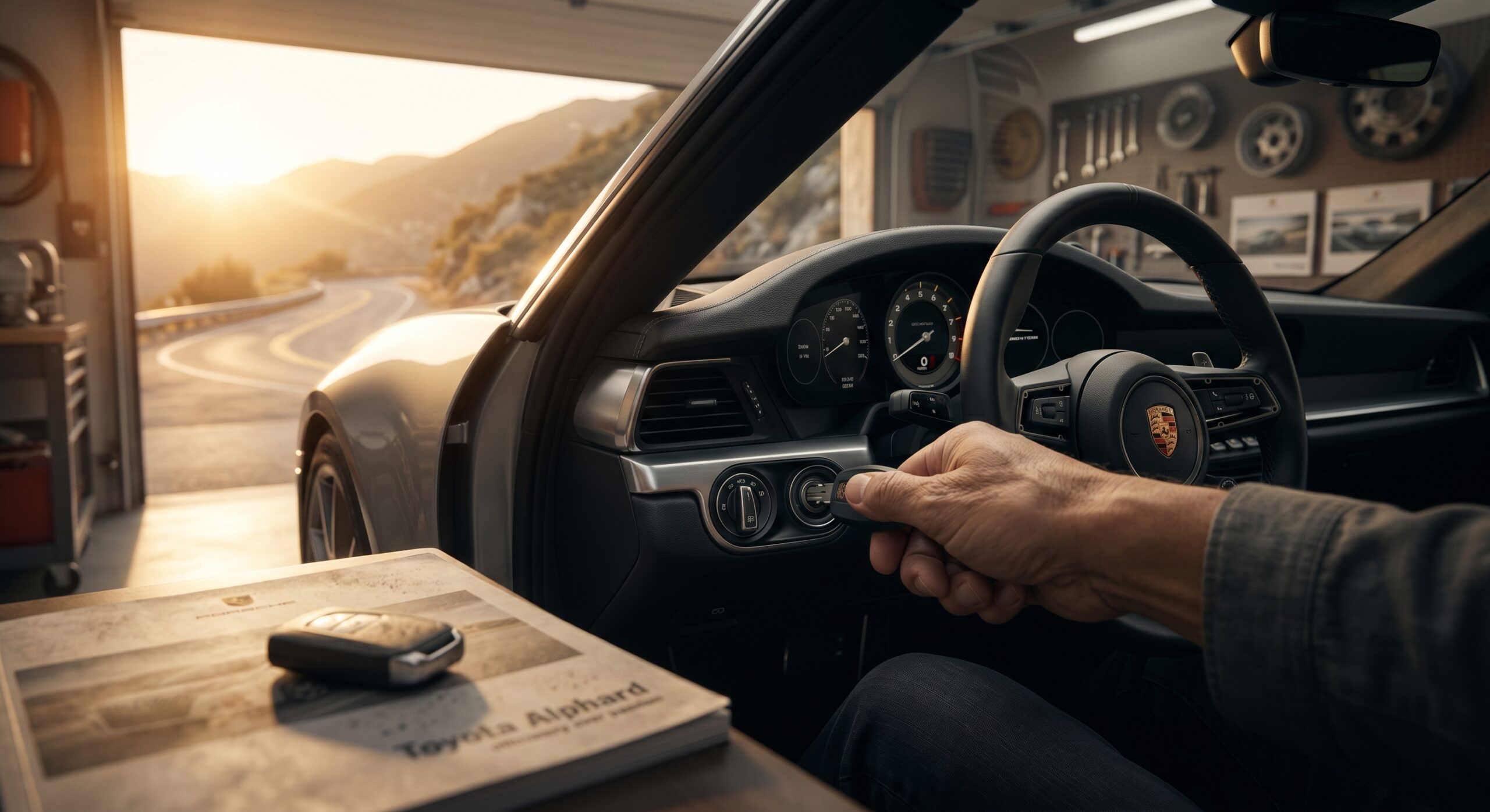 左手でキーをひねった瞬間、背後で目覚める水平対向6気筒──フラットシックスの野太い咆哮が、ガレージの空気をびりびりと震わせる。