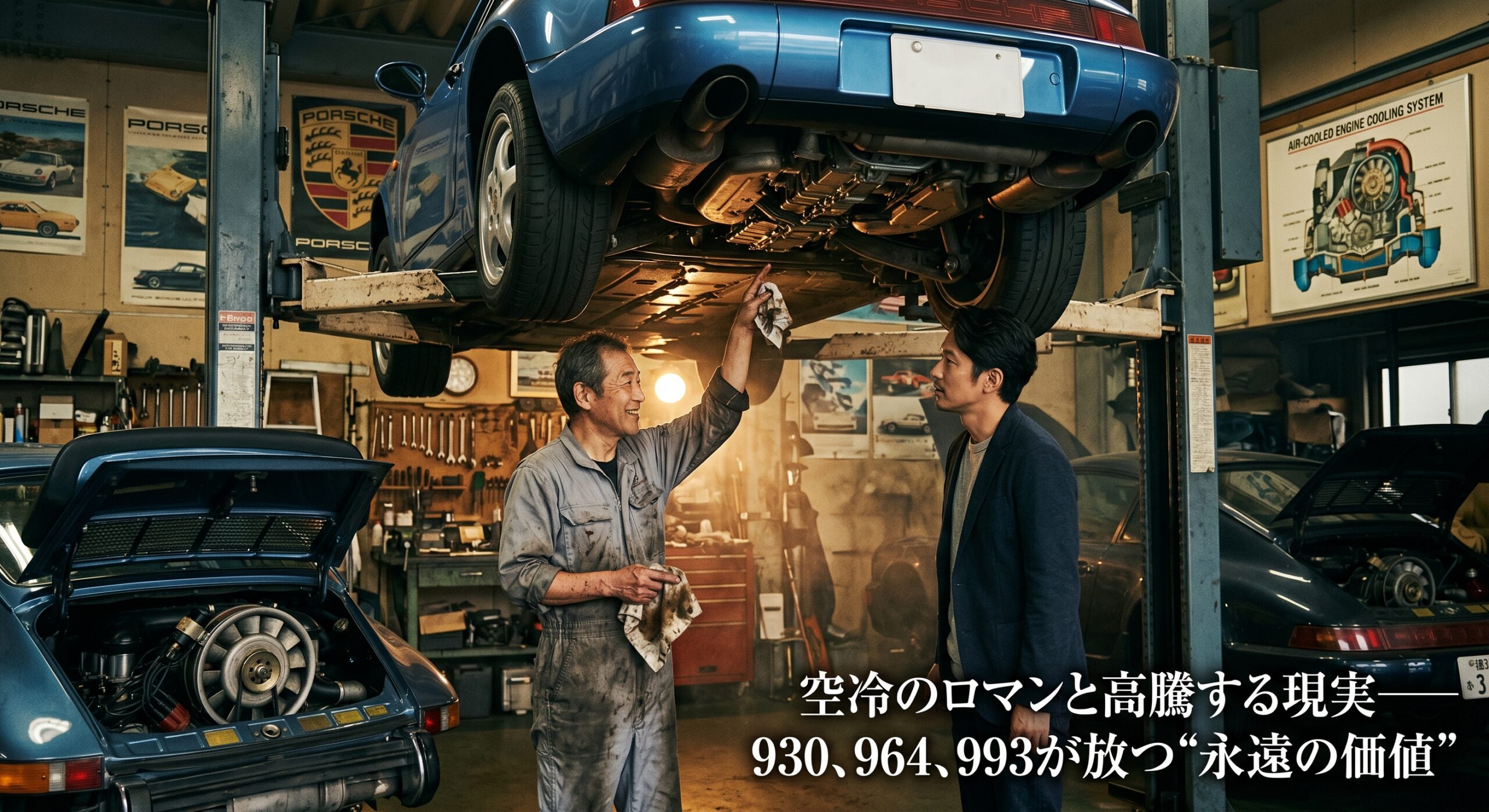 リフトに上げられた964の下回りを眺め、微かに滲むオイルを見て顔をしかめる僕に、彼はオイルまみれのウエスを手にしたまま、カラカラと笑ってこう言った。